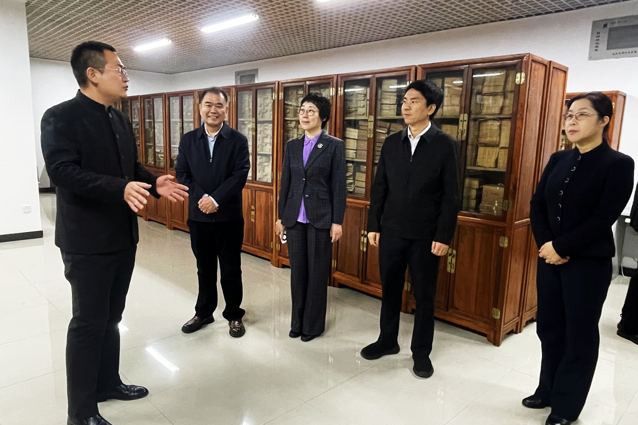 在古籍特藏部,刘宏书记、罗文波校长参观了古籍书库、民国文献书库、《四库全书》书库、师大文库等特色馆藏,听取了关于古籍、民国文献等特藏资源收藏情况的介绍,重点了解了部分珍贵古籍文献的藏存现状与相关应用开发的发展规划。