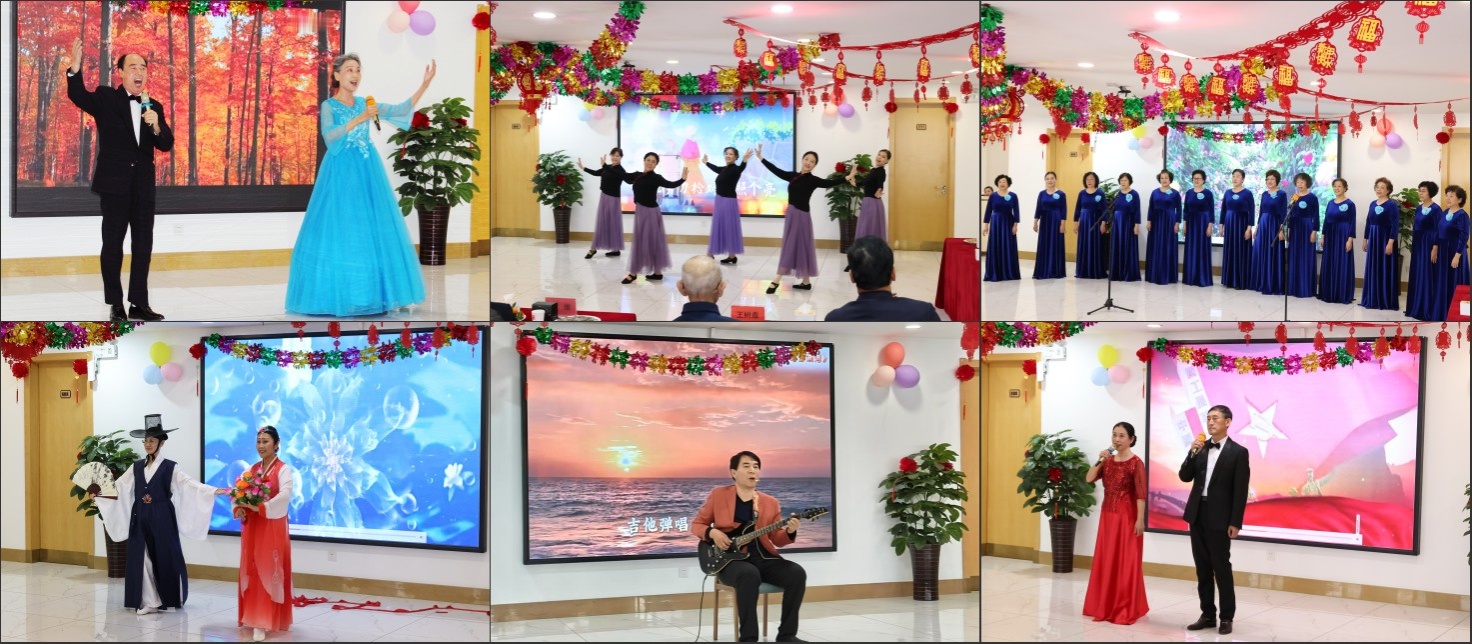老教师艺术团的演员们用甜美的歌声歌唱美好生活、祝福伟大祖国,用曼妙的舞姿渲染节日气氛、表达内心喜悦。联欢会还安排了趣味抽奖环节,会场上歌声、笑声、掌声此起彼伏。