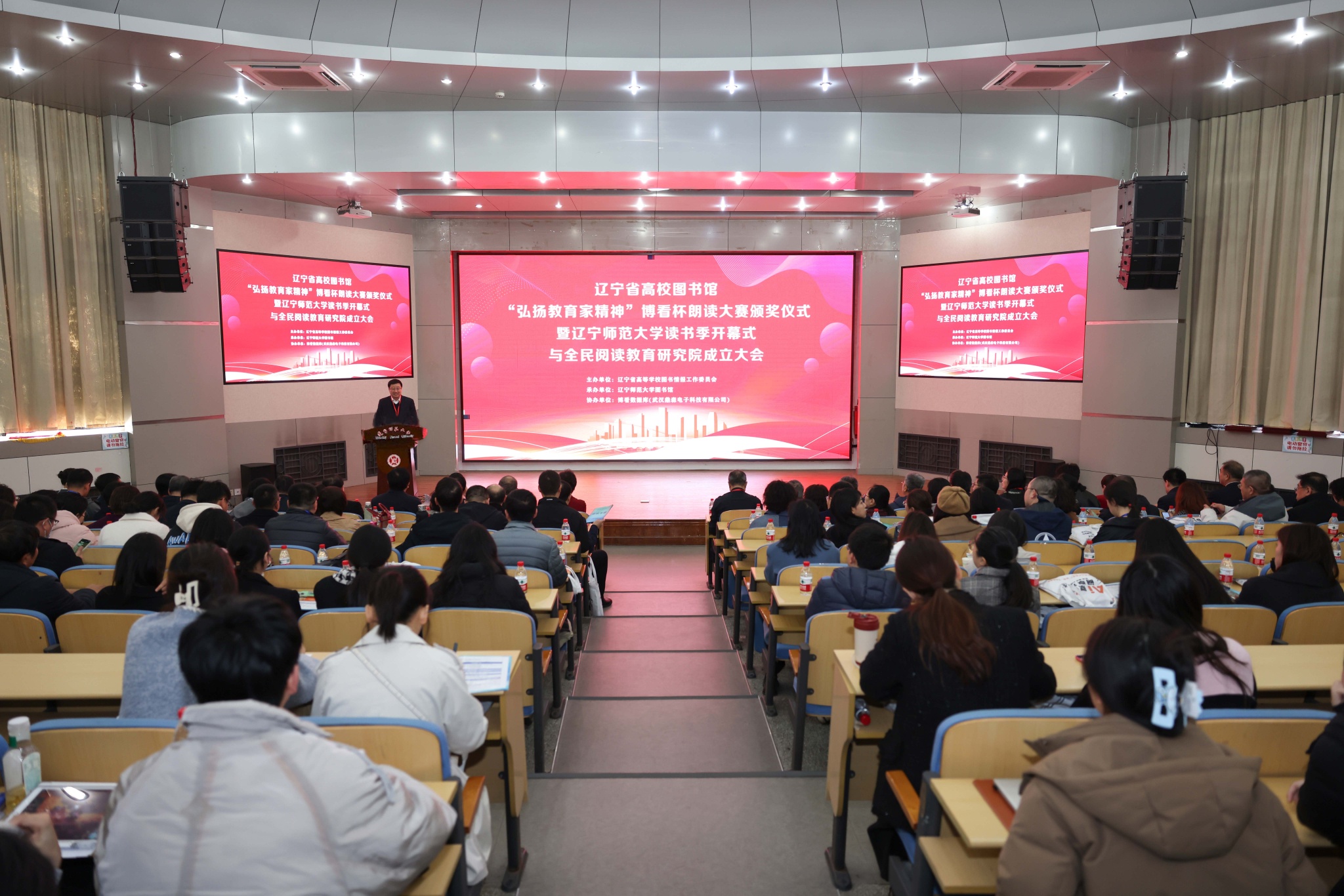 3月20日,辽宁省高校图书馆“弘扬教育家精神”博看杯朗读大赛颁奖仪式暨辽宁师范大学读书季开幕式与全民阅读教育研究院成立大会在黄河路校区学术报告厅举行。来自中国图书馆学会、中国人民大学、中国传媒大学、华东师范大学、广东省东莞市图书馆、辽宁省图书馆等业界特邀专家,东北大学、大连理工大学等省内46家高校图书馆馆长、全省高校图书馆的150名馆员代表及我校管理学院部分师生,共计300余人参加了大会。