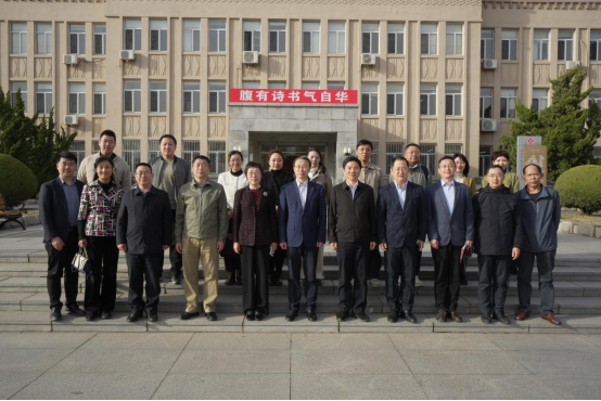 座谈会后,学校领导与参会人员在主楼前合影留念。