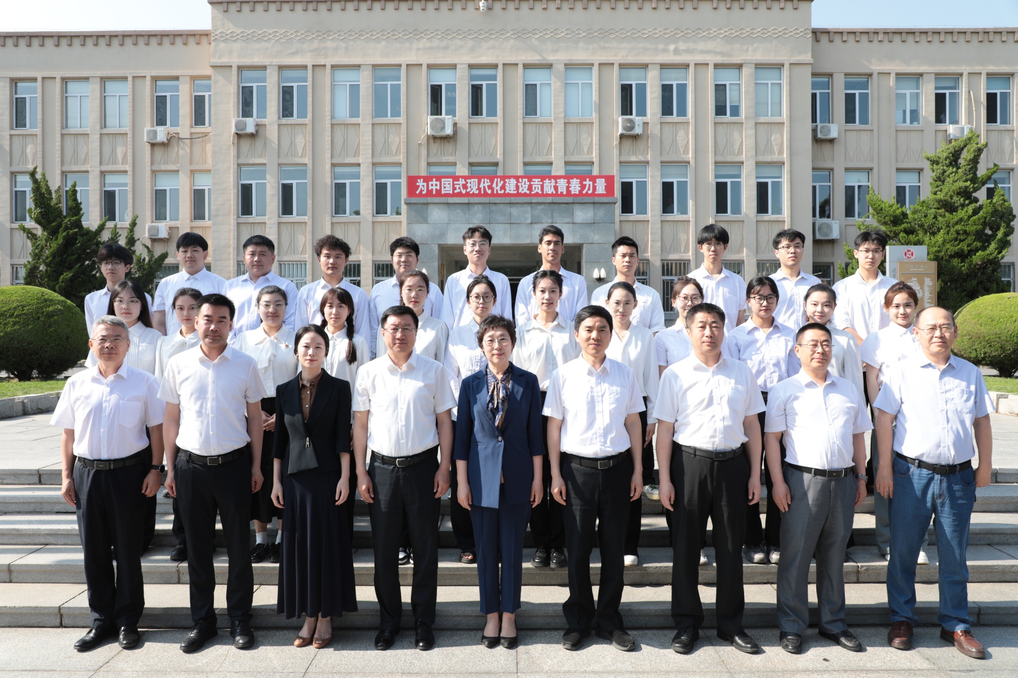 座谈会后,全体毕业生代表与参会领导老师在主楼前合影留念。