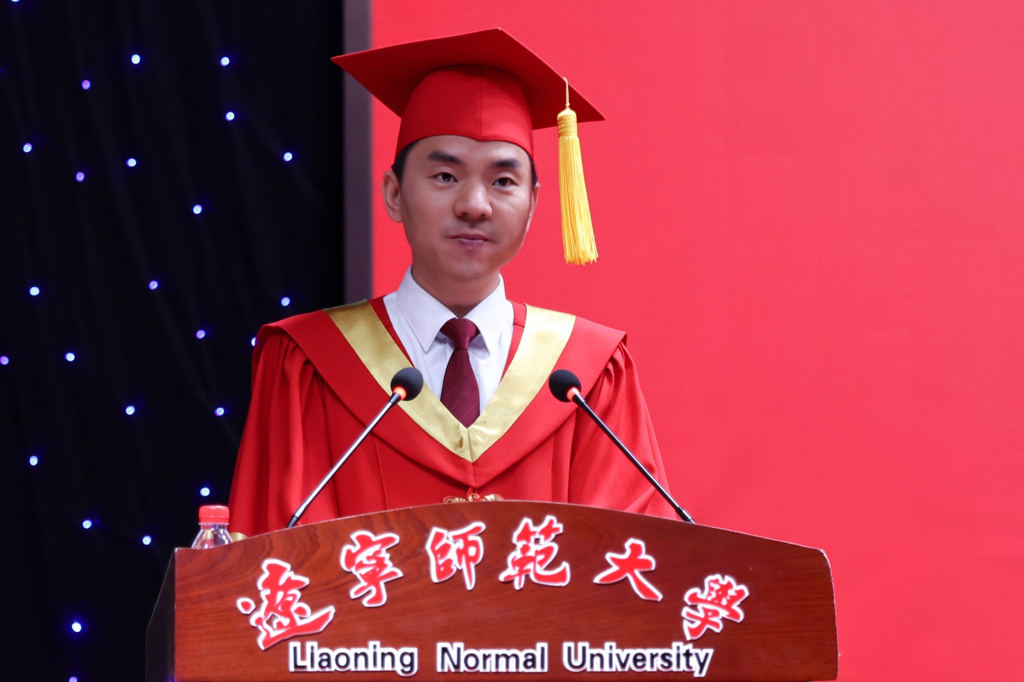 物理与电子技术学院1996级物理学教育(本科)、2000级理论物理硕士,辽宁省宇宙学与天体物理重点实验室主任,东北大学理学院二级教授张鑫作为校友代表致辞,他以“星海映鸿志,风起赴新程”为主题,他深情回顾在辽师的七年求学时光,从普通工人家庭出身的小城青年,到成长为探索宇宙奥秘的物理学者,张鑫用自己的经历鼓励毕业生们。他强调,要展现无畏担当,怀揣奉献精神,保持坚定自信与自强不息的毅力,不断迈向卓越,真诚祝愿毕业生的人生旅途如绚烂锦绣,光彩夺目,芳华永驻。
