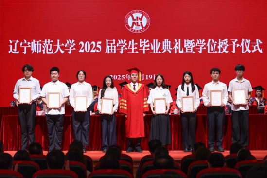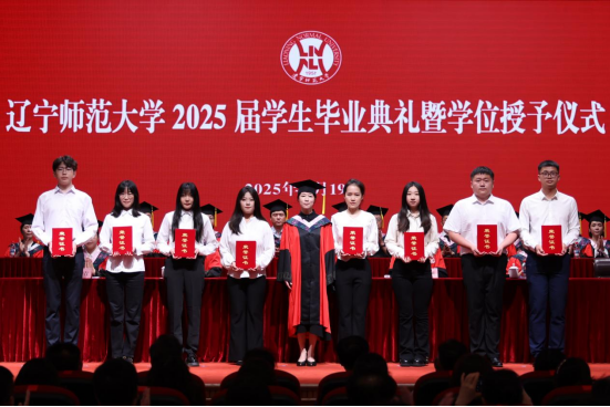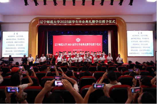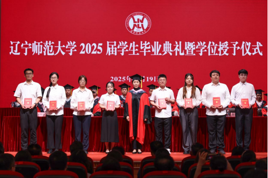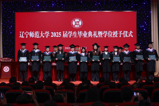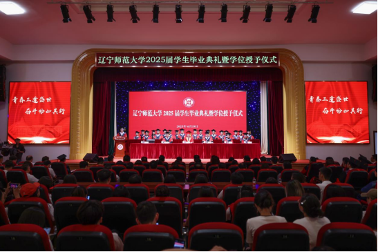6月19日上午,辽宁师范大学2025届学生毕业典礼暨学位授予仪式在黄河路校区礼堂举行。校长罗文波,校领导石竹青、曹锡顶、刘魁勇、李玉君、宁芳,校学位评定委员会委员出席典礼。校友代表辽宁省宇宙学与天体物理重点实验室主任张鑫;博士生导师,学校各部处、各二级单位负责人、教职工代表、毕业生代表、在校生代表以及家长代表参加典礼。毕业典礼由副校长石竹青主持。本次毕业典礼同步进行了网络直播。