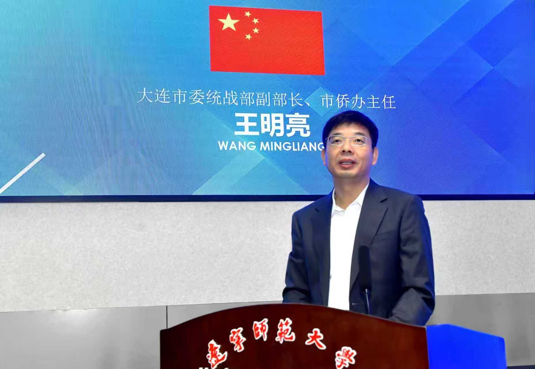 王明亮在致辞中希望各位学员以此次研习为契机,成为中华文化的积极传播者、中外交流的积极践行者,为涵养中华海外教育生态、促进华社和谐发展贡献力量;并能成为大连美景的体验者、记录者、传播者,将这座城市的浪漫与活力传递给世界各地的华裔学子。