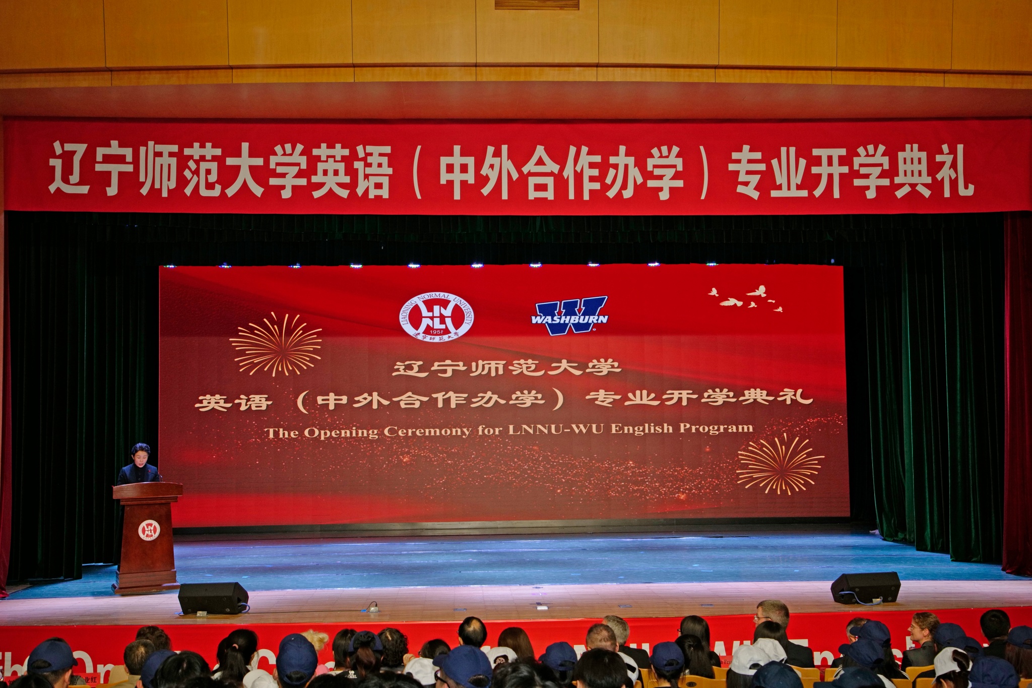开学典礼在庄严的中美国歌声中拉开帷幕。李玉君代表学校对华盛本大学代表团的到来表示热烈欢迎,对英语(中外合作办学)专业2025级新生表示热烈祝贺。李玉君详细介绍了辽宁师范大学的办学实力和外国语学院的专业及人才培养优势,在回顾两校合作取得的成果之余,希冀新生成长为具有家国情怀与国际视野的复合型人才,同时期望两校合作不断深化,共创辉煌未来。