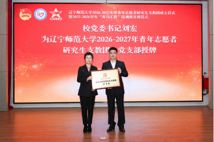 仪式上,校党委副书记徐昭峰宣读了《关于成立辽宁师范大学2026-2027年度青年志愿者研究生支教团的决定》以及《关于成立辽宁师范大学2026-2027年度青年志愿者研究生支教团党支部的决定》并为研究生支教团授旗。随后,校党委书记刘宏为研究生支教团党支部授牌。