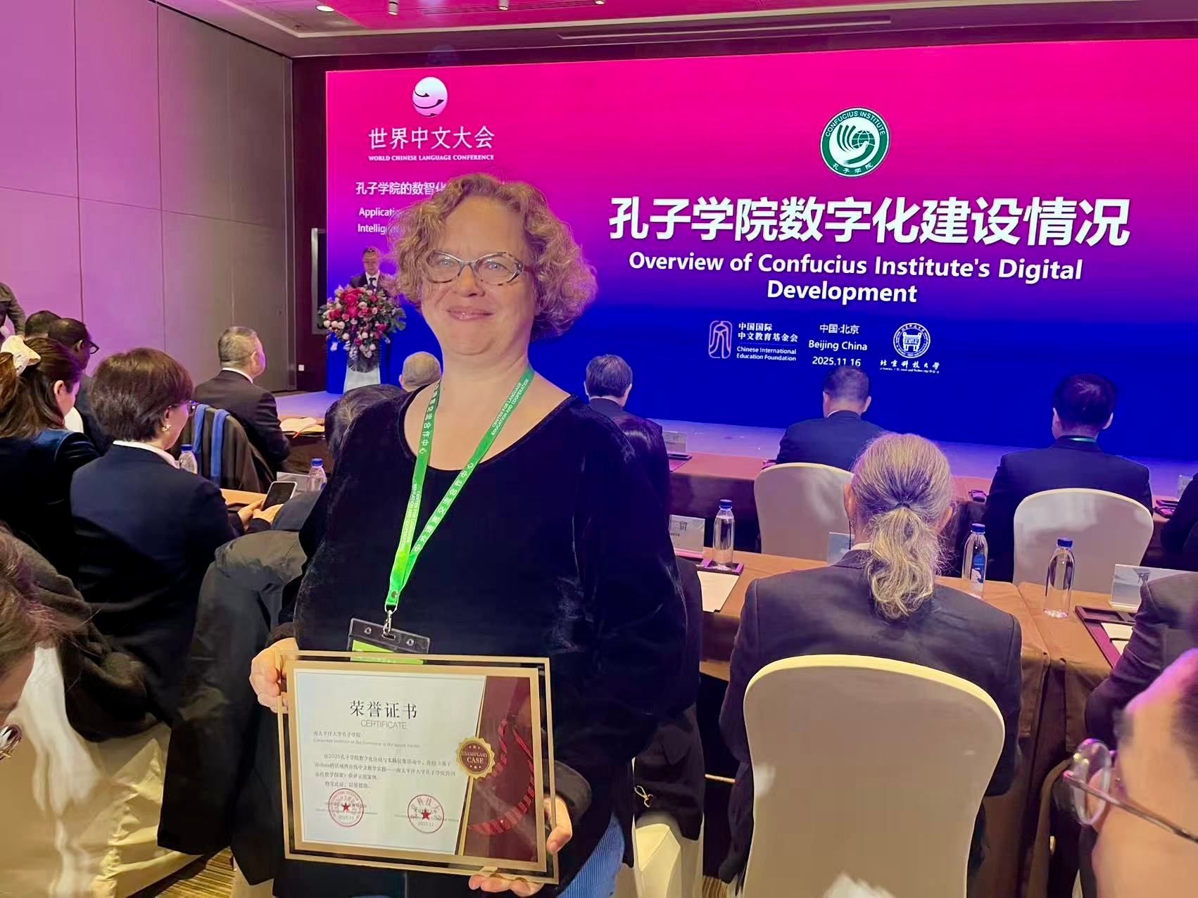 在本次大会上,我校意大利米兰国立大学孔子学院获评“HSK最佳合作伙伴”,孔院报送的《“数智赋能,慧享课堂”——米兰国立大学孔子学院汉语课的AI教学实践探索》获评示范案例。国际教育学院魏玉红、高宁两位教师获评中文联盟“金牌教师”。