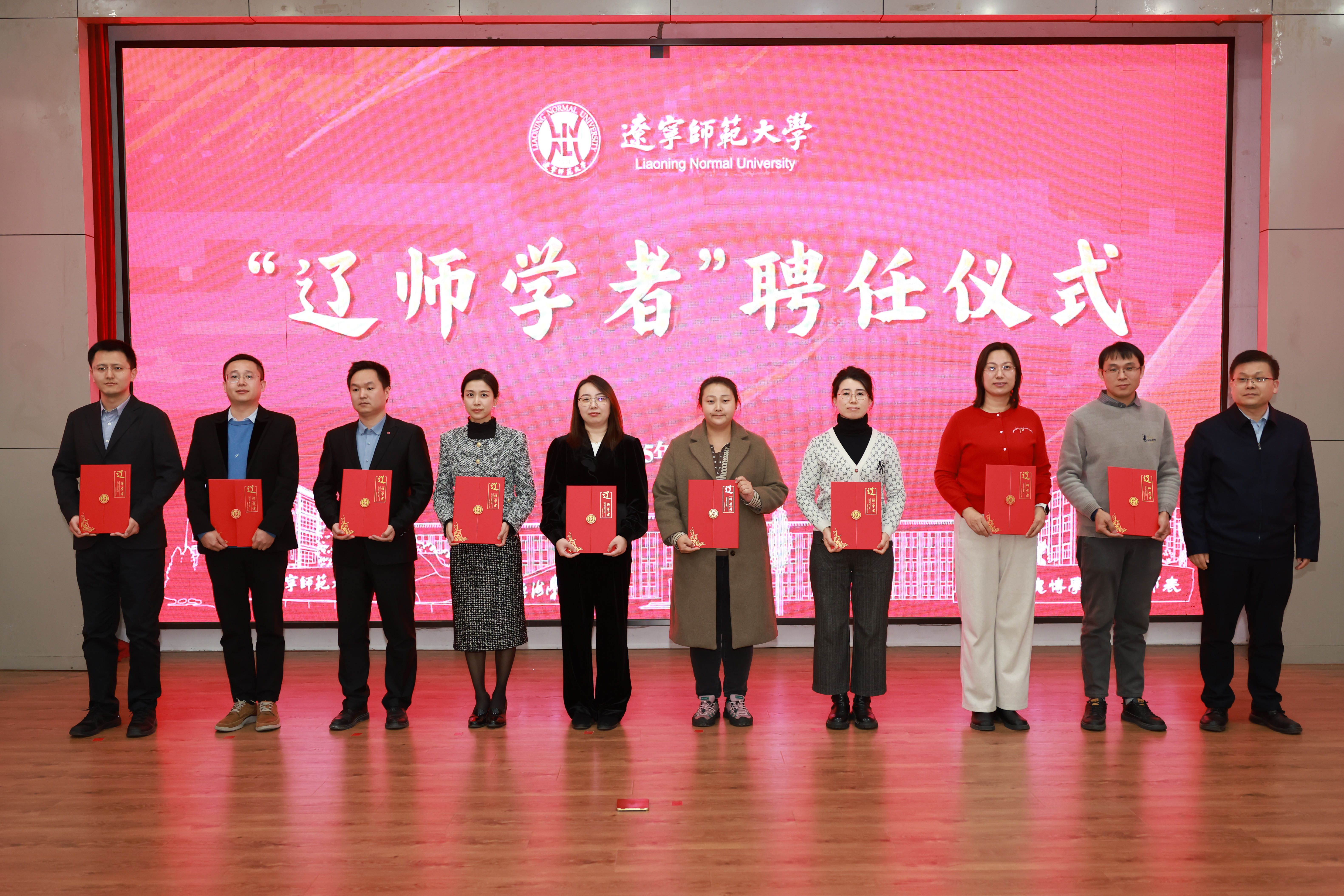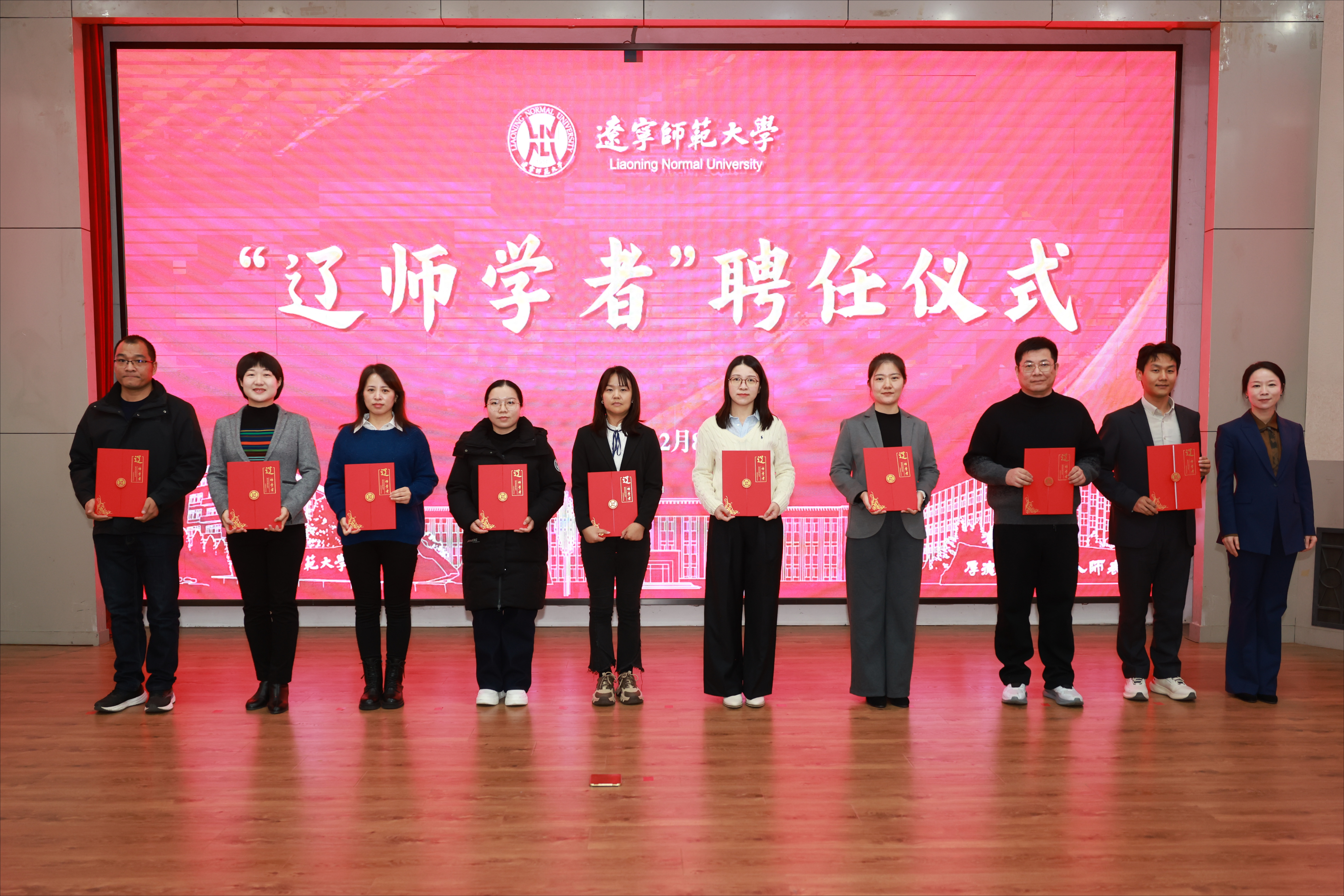 刘宏为“辽师学者”领军人才颁发聘书;罗文波为“辽师学者”优秀中青年人才颁发聘书;徐昭峰、于长河、曹锡顶为“辽师学者”青年拔尖人才颁发聘书;李玉君、宁芳为“辽师学者”青年骨干人才颁发聘书。