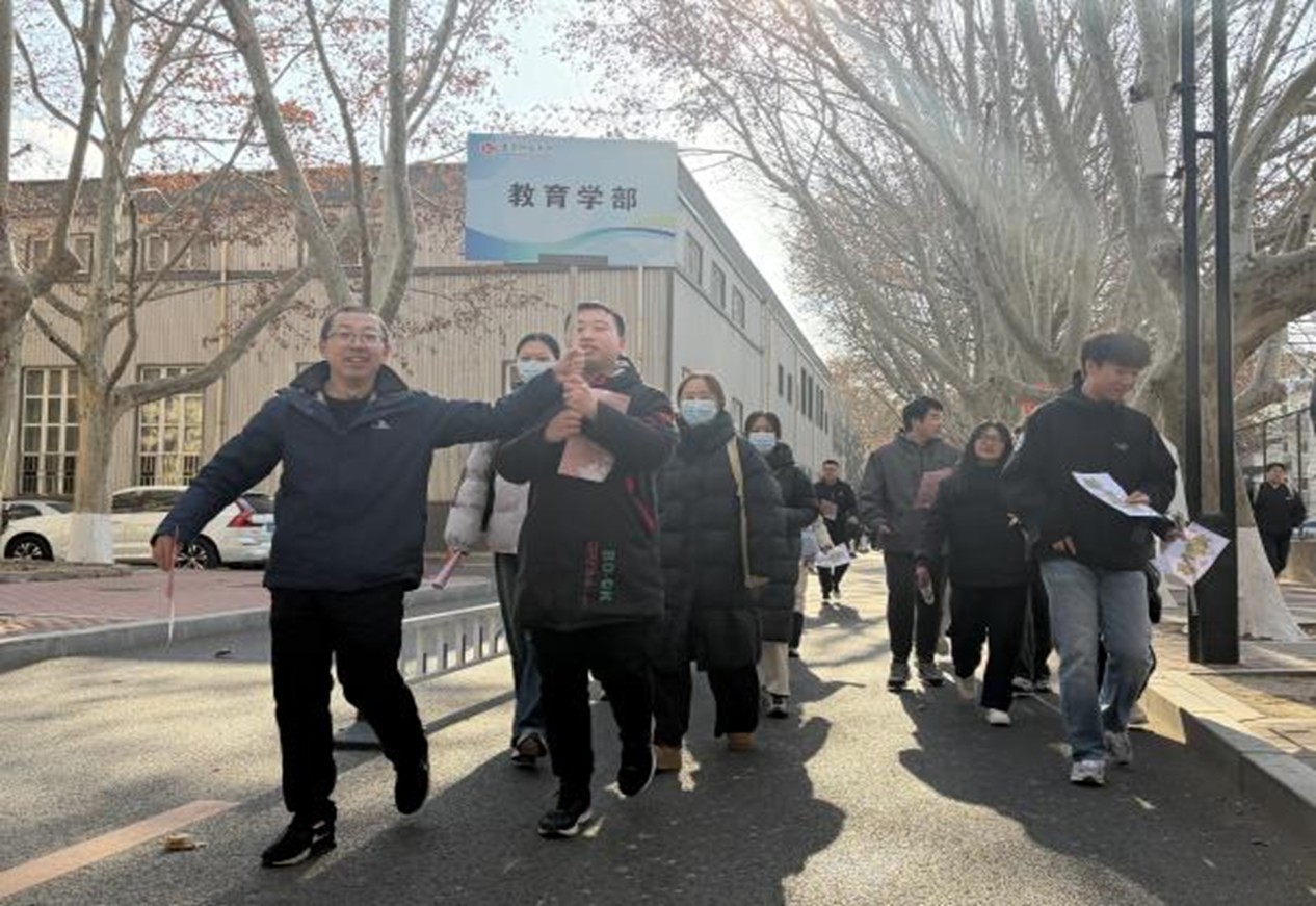 本次徒步路线经过精心设计,黄河路校区设置6个主题打卡点,西山湖校区设置5个主题打卡点。每一个站点,不仅是里程的标记,更是历史的回望与精神的加油站。师生们意气风发,步履铿锵,他们相互鼓励,携手前行,嘹亮的口号与欢歌笑语回荡在校园,充分展现了辽师研究生团结奋进、朝气蓬勃的昂扬风貌。