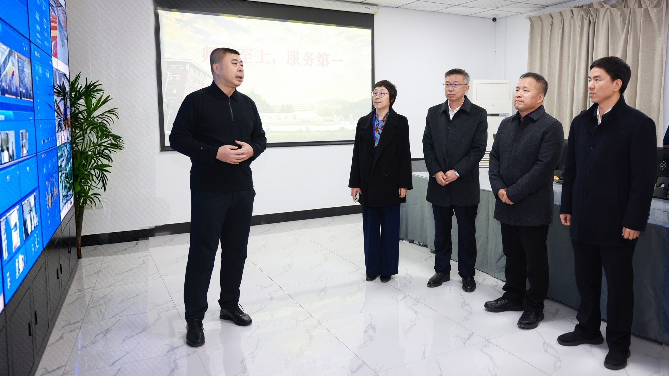 苑晓杰、李长吾一行先后实地考察了我校南院交叉中心基建项目、北院学生公寓基建项目、后勤智慧管理中心及主楼一楼安防指挥中心。在各考察点,相关负责人详细汇报了项目建设、运营管理、服务保障等情况。调研团队对我校在校园硬件升级、后勤智能化管理、安全防控体系建设等方面的成效给予高度评价。