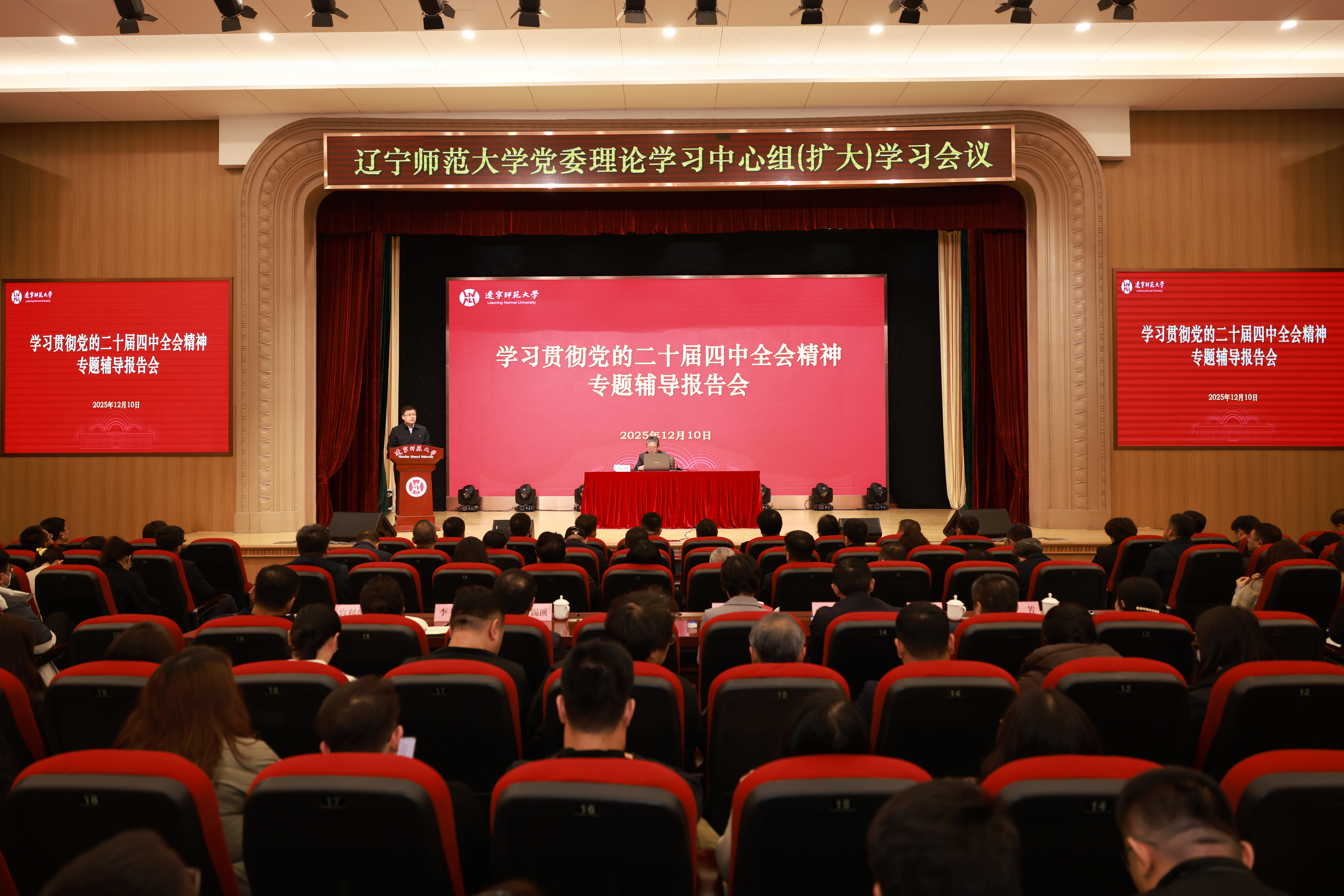12月10日,学校召开党委理论学习中心组(扩大)集体学习会暨专题辅导报告会,深入学习贯彻党的二十届四中全会精神,研究部署学校贯彻落实工作。中国浦东干部学院经济高质量发展研究中心主任胡云超教授作专题辅导报告。全体在校校领导、副处级及以上领导干部(含正处级调研员)、本科生和研究生辅导员、组织员参加会议。校党委书记刘宏作总结讲话。校党委副书记徐昭峰主持会议。