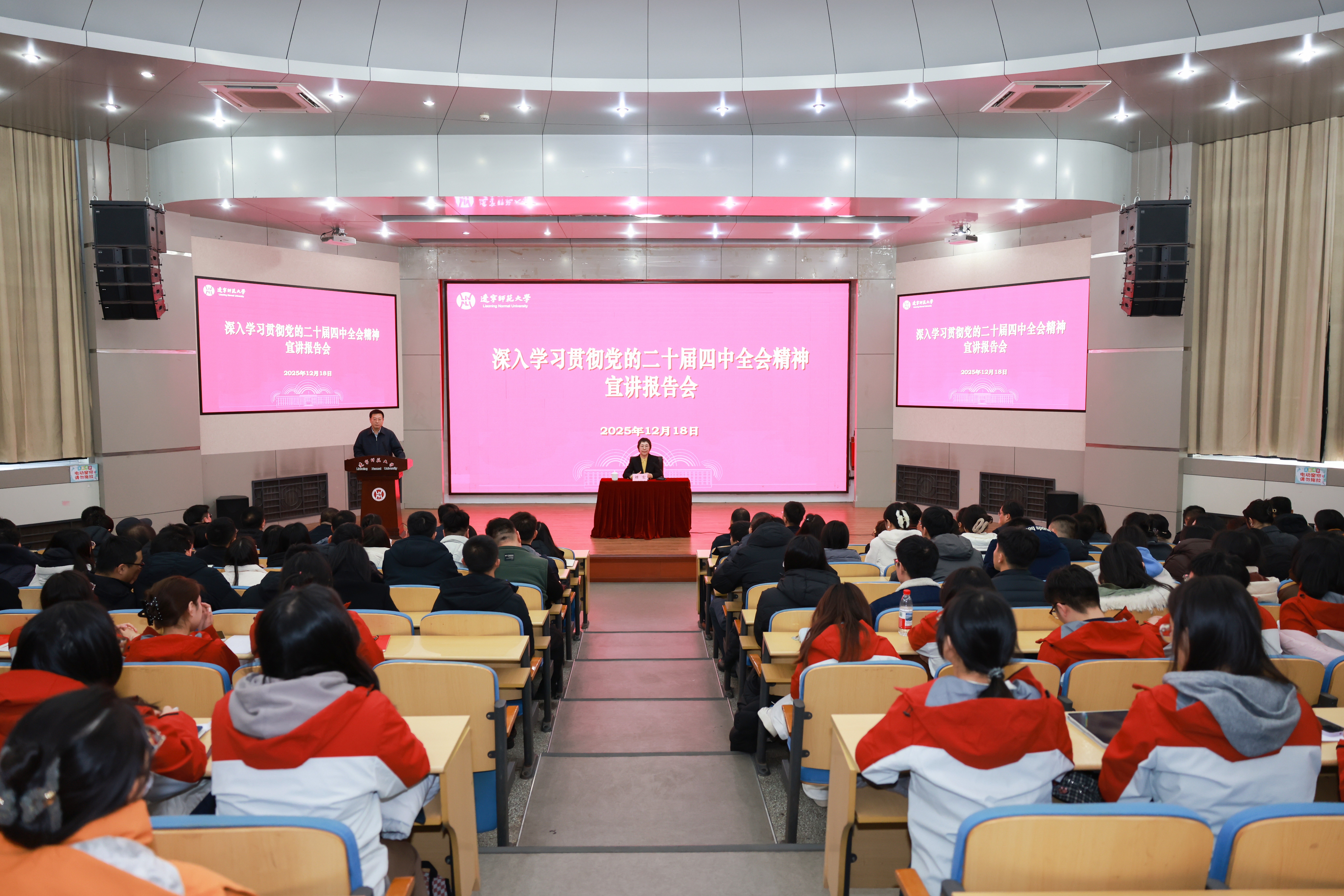 刘宏最后要求,全校上下要把学习全会精神与学习贯彻习近平总书记对辽宁的重要讲话和重要指示精神贯通起来,与学习贯彻党的二十大和二十届历次全会精神贯通起来,一体学习、一体贯彻、一体落实。要将全会精神融入学校“十五五”事业发展规划编制,聚焦教育强国建设目标,在学科建设、人才培养、科研创新、校地协同等关键领域精准发力,以高质量发展成效服务辽宁全面振兴,为推进中国式现代化贡献辽师智慧与力量。在授课过程中,刘宏通过中外案例对比分析,运用大量最新统计数据支撑观点,并适时提出问题,与师生进行有效互动,达到良好的宣讲效果。