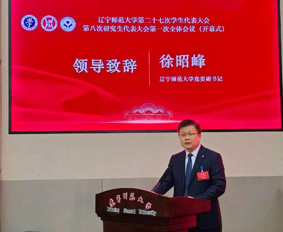 校党委副书记徐昭峰代表学校对学代会、研代会的顺利召开表示热烈祝贺,并向与会嘉宾、代表和全校青年学生致以诚挚问候。他指出,学代会制度是社会主义民主政治在校园的重要体现,对促进学生自我管理、服务、监督具有重要意义。他充分肯定了学生会、研究生会一年来在各方面工作中取得的积极成效,并赞扬广大同学在学术创新、大学文化、社会服务等领域展现出的责任担当。面向未来,希望学生会、研究生会引领辽师学子坚定理想信念,厚植家国情怀,做与党同行的爱国者;融入学校发展大局,提升综合素养,做勇于担当的奋斗者;践行服务宗旨,发挥桥梁作用,做同学信赖的奉献者。他勉励同学们将个人成长融入国家和人民需要,在助力师大发展和社会主义现代化建设中绽放青春光彩。