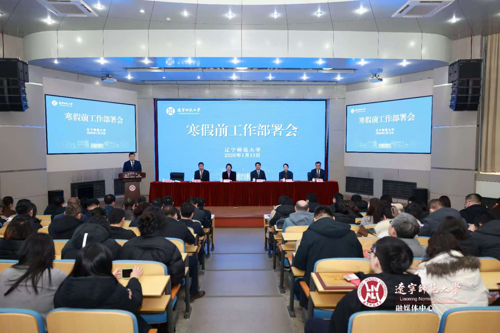 罗文波在讲话中回顾了学校2025年事业发展取得的突破性成绩:教育部全球教师发展学院东北亚分院成功落地,人文高等研究院、东北亚教师教育发展研究院等交叉平台相继建立;获评教育部虚拟教研室试点建设典型教研成果,荣获全国教材建设奖;国家社科基金重大专项、全国教育科学规划重点项目取得零的突破;国家级人才引育成效显著,“辽师学者”梯队逐步成形;学生在全国创新竞赛中屡获佳绩;教育强国二、三期工程稳步推进。他强调,寒假是承前启后、蓄能谋远的关键时期,各单位要在保障假期休整的同时,持续推进重点任务,提前谋划新学期工作,深入开展安全隐患排查,加强实验室、宿舍、食堂等重点区域管理,做好留校学生服务保障,严格执行值班制度,确保校园和谐稳定,为“十五五”规划开局奠定坚实基础。