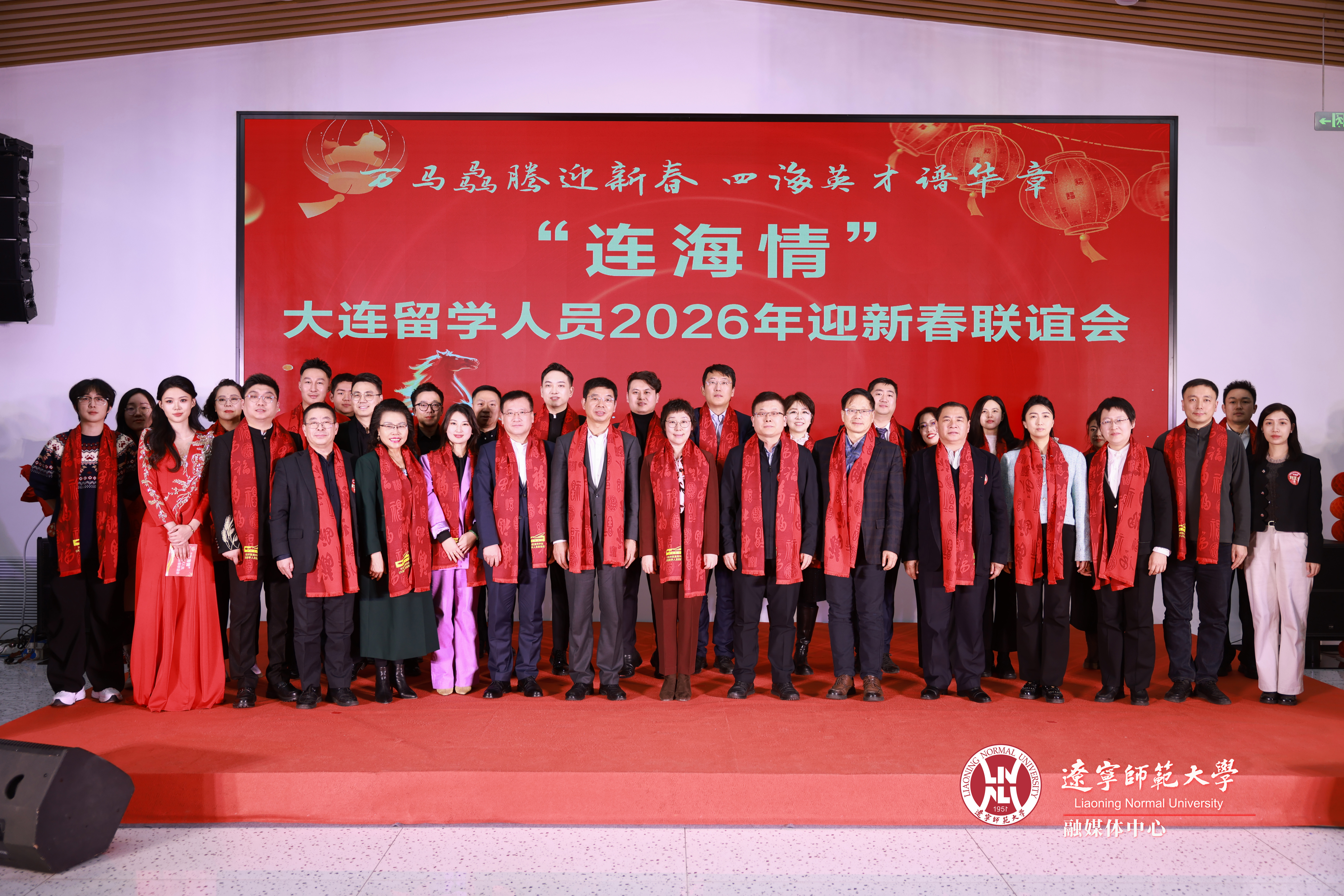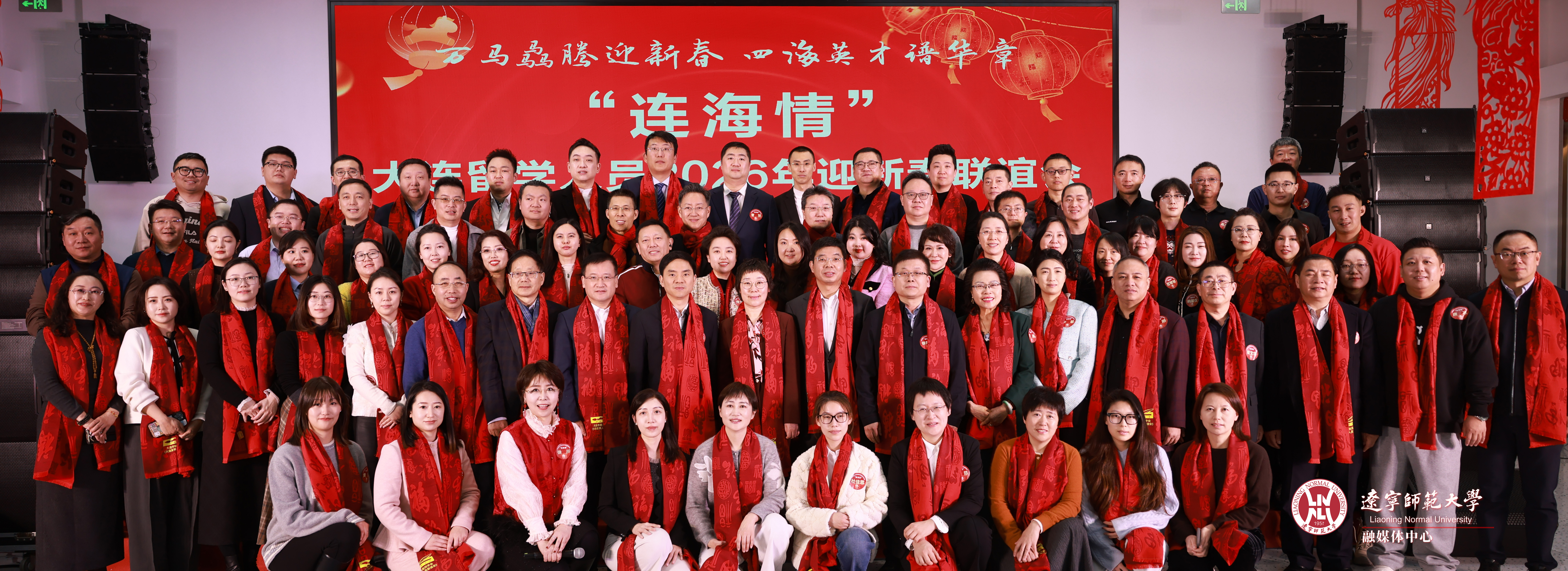 岁序更替,春潮涌动。1月25日,“连海情”--大连留学人员2026年新春联谊会在我校黄河路校区北院教工餐厅举行。大连市委统战部副部长、市侨办主任王明亮,大连市欧美同学会会长、校党委书记刘宏,校长罗文波,校党委副书记徐昭峰,校党委常委、统战部部长崔宝华,市欧美同学会秘书长沙莎,市欧美同学会会长会成员,各地区、高校分会留学人员代表,在连回连过年的百余名留学人员及我校各民主党派负责人、无党派人士代表欢聚一堂,共叙桑梓情谊,共话发展机遇,在浓浓的年味中凝聚起留学报国、建设家乡的磅礴力量。
