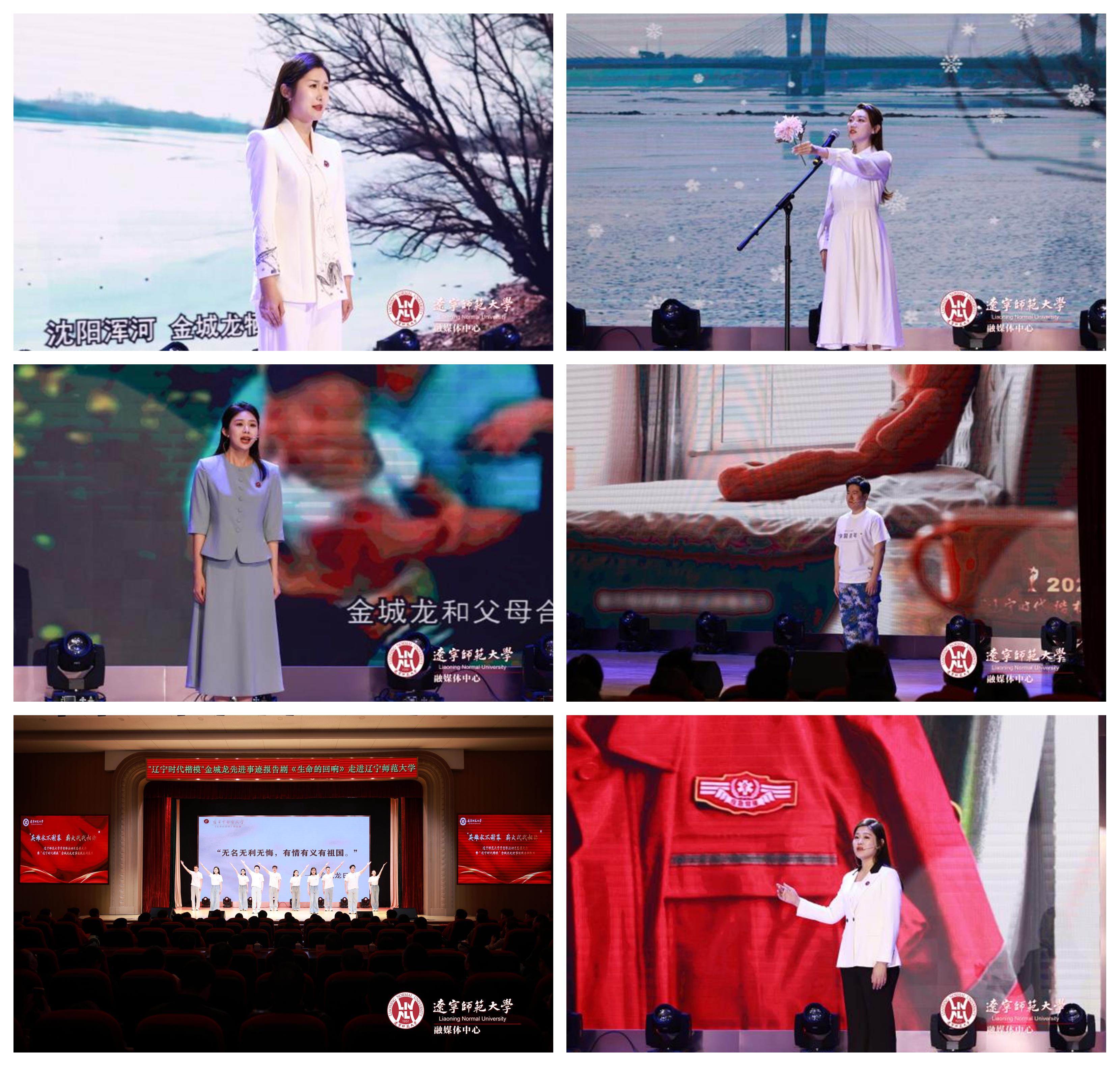 随后,由辽宁中医药大学主创团队精心编排的金城龙先进事迹报告剧《生命的回响》正式上演。该剧以金城龙同志的真实事迹为蓝本,通过丰富的艺术表现形式,生动还原了金城龙同志平凡而伟大的一生,刻画了金城龙同志信念坚定、矢志报国的思想品格,舍生忘死、挺身而出的英雄气概,甘于奉献、服务社会的高尚情操,永葆本色、向上向善的朴实作风,诠释了其“天使白”“海军蓝”“志愿红”的英雄本色与赤子情怀。“无名无利无悔,有情有义有祖国”,这句贯穿全剧的铿锵誓言,让现场观众感慨万千,热泪盈眶。