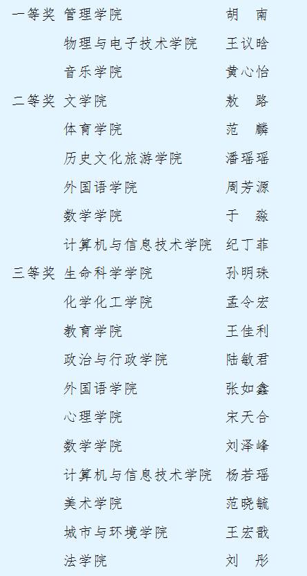 辽宁师范大学“理想召唤行动”新生演说大赛获奖名单