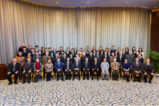 全国政协副主席王家瑞、日本前首相福田康夫与获奖者合影