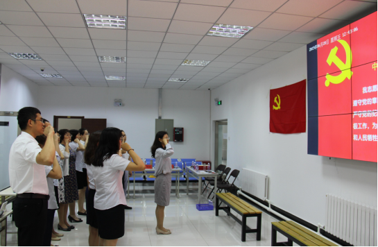 比赛开始前,计财处全体党员在支部书记张鹤同志的带领下,举行了重温入党誓词活动。