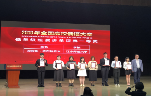 10月26日上午,由北京外国语大学承办的第十二届全国高校俄语大赛在北京外研社国际会议中心礼堂隆重举行,来自国内144所高校的359位参赛选手参加了此次赛事。由我校外国语学院俄语系张艳娟、梁洪琦两位老师带队的俄语系学生表现优异、喜获佳绩:2018级孜拉乐•依布拉依木荣获本科生低年级组单项演讲比赛一等奖; 2016级于艺凡荣获本科生高年级组单项演讲比赛二等奖; 2019级兰浩芳荣获研究生组单项演讲比赛三等奖。