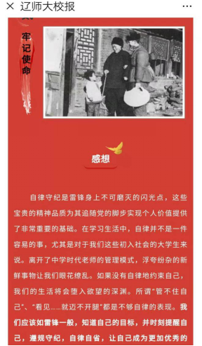 此外,学校党委宣传部利用手机微信H5程序生成并使用专属雷锋头像,在微信、微博、抖音等新媒体发布“雷锋”日记精选内容、学雷锋感言,打造网络自媒体学习雷锋阵地;校团委还开展了雷锋式班级申报建设活动,积极传播青春正能量。