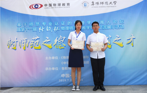 由中国教育学会物理教学专业委员会、全国知名中学物理教育类杂志《物理教师》和《中学物理》联合主办,阜阳师范大学承办的基于师范专业认证的物理学科育人论坛暨第十一届“格致杯”物理师范生教学技能交流展示活动落下帷幕。本次活动共有来自北京师范大学、东北师范大学、华中师范大学等全国61所高校的484名学生参加。我校物理与电子技术学院本科生吴咏桐和李思雨代表学校参加了本次交流展示活动。