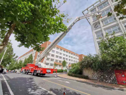 随着警铃声的响起,消防逃生演练正式拉开帷幕。五个公寓的1500余名新生按照从上到下的顺序依次撤离,学生沿着指定的疏散通道撤出公寓,到达指定的安全位置。随后,甘井子区消防救援大队红旗中队的消防官兵为新生模拟救援过程。使用消防云梯成功营救出被困于五楼的一名被困人员;在空旷场地对新生如何铺设水带、使用灭火器进行详细的讲解、演示及实际操作。整个演习活动做到“从实战出发,快速反应、有效处置”,努力把事故危害降到最低程度,达到了预期的效果。