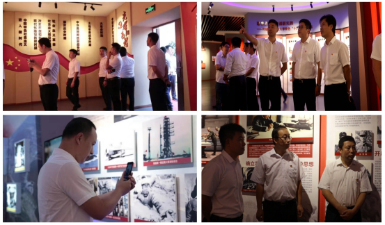 在展厅中,驻村干部仔细浏览着一幅幅历史照片和一幕幕珍贵影像,学习了解中国近代以来170多年的斗争史、我们党98年的奋斗史、新中国70年的发展史及学校党建和思想政治工作历程。