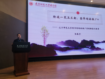 我校图书馆馆长杨春宇在大会上作了题为“‘阶庭一笑玉兰新,荟萃阅读推广+’一一辽宁师范大学阅读推广的实践与思考”的案例分享报告,对我校阅读推广特色工作做了总结与展望,对题目中所引用的“玉兰轩”进行了释义,播放了原创歌曲《玉兰轩》,优美动听的歌曲获得了与会者的称赞与好评,会后与会者纷纷要求分享作品。