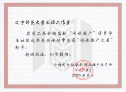 第二届全国高校“阅读推广之星”优秀学生社团评选活动是由中国图书馆学会阅读推广委员会主办,武汉大学图书馆、广东外语外贸大学图书馆承办,广东粤图之星科技有限公司提供支持,旨在鼓励以阅读为主要活动内容的学生社团,促进高校学生社团繁荣发展,推进全民阅读推广工作稳步持续开展。活动于2019年6月1日正式启动,征集时间为6月1日至6月30日,最终共征集来自27个省、自治区、直辖市,189所图书馆,215个学生社团提交的申报材料。根据评委现场讨论及投票表决,20个社团被评为第二届全国高校“阅读推广之星”优秀学生社团。辽宁师范大学乐读工作室就是其中之一。