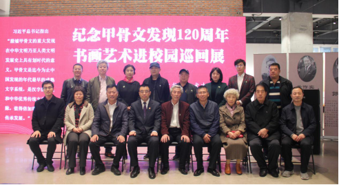 为纪念甲骨文发现120周年,弘扬中华优秀传统文化,营造高雅的校园文化氛围,11月10日上午9时,“纪念甲骨文发现120周年书画艺术进校园巡回展”在我校南院美术馆隆重开展。