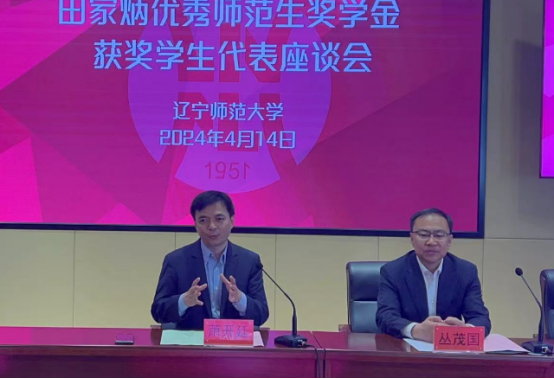 4月14日上午,我校在黄河路校区国际会议厅召开田家炳优秀师范生奖学金获奖学生代表座谈会。田家炳基金会副总干事萧开廷、干事刘秀琼,校党委副书记丛茂国,党委学生工作部相关人员及2021-2023年田家炳优秀师范生奖学金获奖学生代表参加了座谈会。座谈会由党委常委、统战部部长兼学生处(学工部、武装部)处(部)长崔宝华主持。