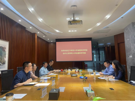 5月16日下午,王辉院长、段冶副院长来到了北京师范大学地理科学学部。北京师范大学地理科学学部党委书记苏筠教授、主管研究生教学工作副部长周涛教授、主管本科生教学工作副部长潘峰华教授参加了交流活动。