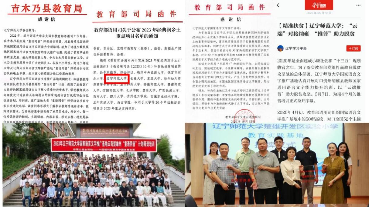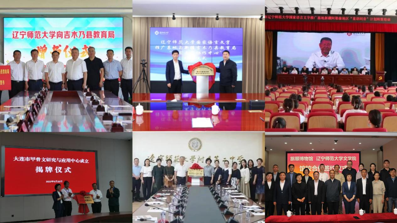 我校基地获批以来,围绕普通话推广普及和文化传承,开展了形式多样的培训活动。一是推普助力脱贫攻坚工作。2020年对口贵州省纳雍县开展面向中小学少数民族教师的普通话提升线上示范培训项目,为提升贫困地区教师国家通用语言文字能力贡献辽师力量。二是“童语同音”计划师资培训工作。2022、2023连续两年面向新疆和云南少数民族教师开展“童语同音”计划师资培训项目,共培训教师400人,助力民族地区教师语言文字能力提升。三是“经典润乡土”计划工作。2023年,我校基地获批教育部“经典润乡土”计划重点项目,全国仅20家单位获批。此次活动面向新疆吉木乃县开展甲骨文润乡土活动,助力打造吉木乃县语言文化特色县。四是甲骨文传承与推广工作。基地与大连市社科联联合成立“大连市甲骨文研究与应用中心”,与旅顺博物馆签订共建合作协议,建设辽宁师范大学附属第二中学、旅顺光荣小学等甲骨文教育特色学校。