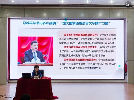 王婷教授的报告从“普通话”“美育”“表达”三个关键词入手,深入浅出、条分缕析地讲解了如何认识普通话、如何认识美育以及美育视角下的普通话表达等三个重要问题,深刻阐明了普通话不仅是语言技能,更关乎文化和情感;清晰揭示了美育不等于艺术教育,而是美感教育;具体展示了普通话表达推广的重要方式——多模态艺术手段。整场报告既有理论的高度,又有实践的广度,不仅为认知普通话、美育、表达三者的本质内涵,领悟语言、文化、情感三者的有机联系带来有益启发,而且激发起在场师生推广普通话、深化美感教育、弘扬优秀传统文化的崇高使命感与强烈责任感。