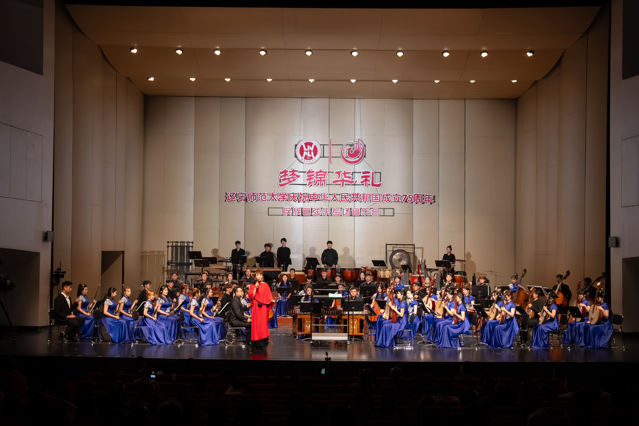 10月17日,第九届辽宁师范大学音乐文化周——“梦锦华礼”民族管弦乐专场音乐会在东港大连大剧院上演,学校各部处、各学院领导、师生及市民近2000人现场观看演出。