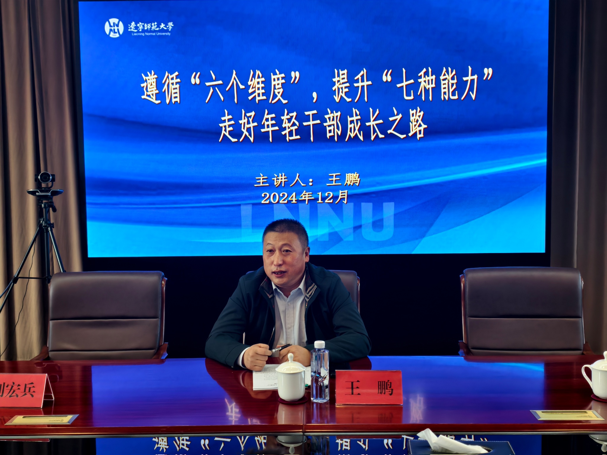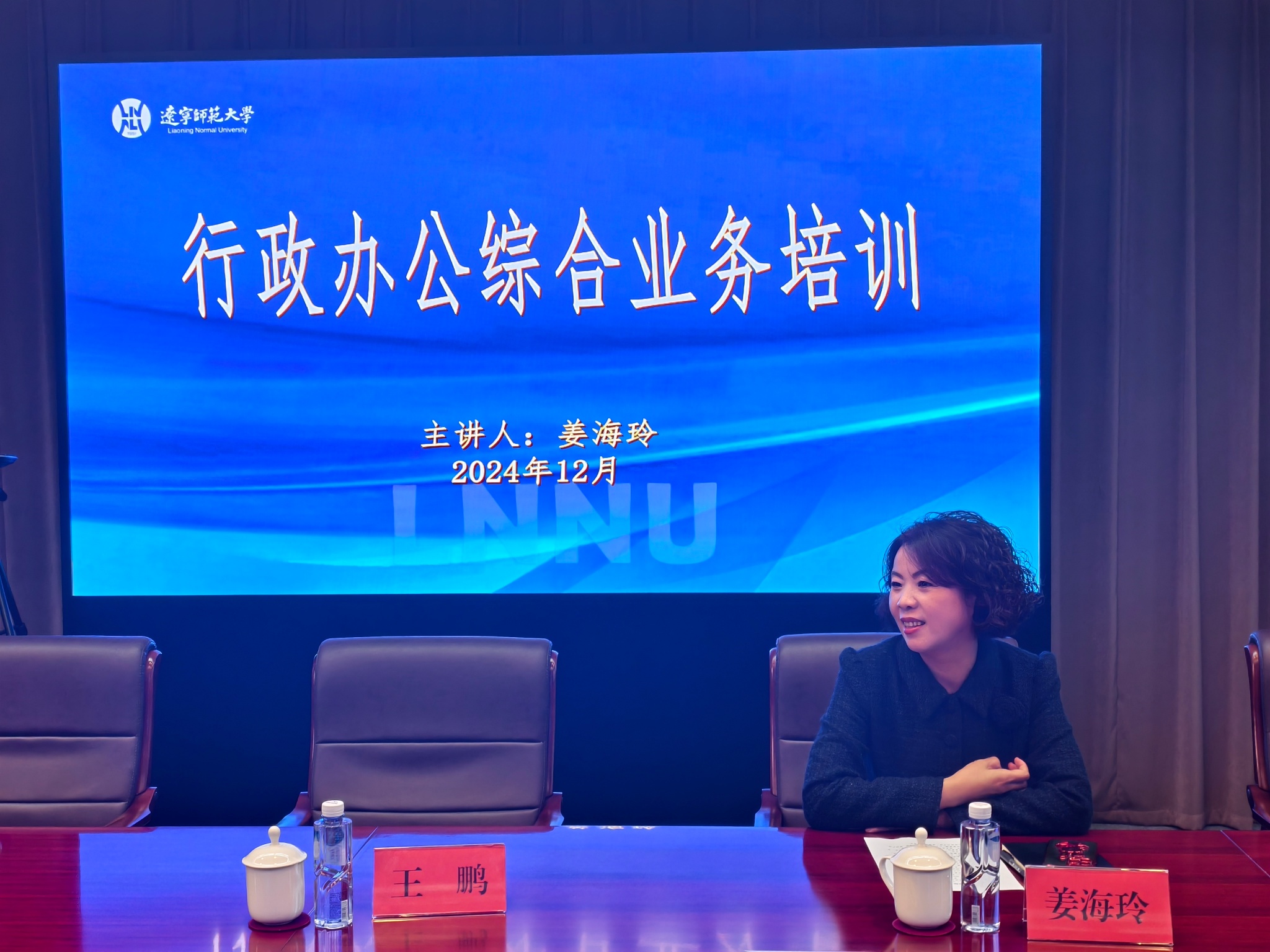 校机关党委书记王鹏从“六个维度”出发,阐述了年轻干部必须牢牢把握新形势、新任务和新要求,不断提升工作能力,号召新入职行政人员主动对标对表学校党委决策部署,忠诚担当,履职尽责。保卫处处长刘宏兵通过典型案例,对校园安全、自救互救、防诈反诈等方面的工作进行详细讲解,激发新入职行政人员主动参与“平安辽师”建设的使命感与责任感。党政办公室副主任姜海玲深入浅出地讲解了公文撰写、印信使用、保密信访等行政办公业务及其规章制度和流程等,以提升新入职行政人员的办文、办会、办事的行政素养。