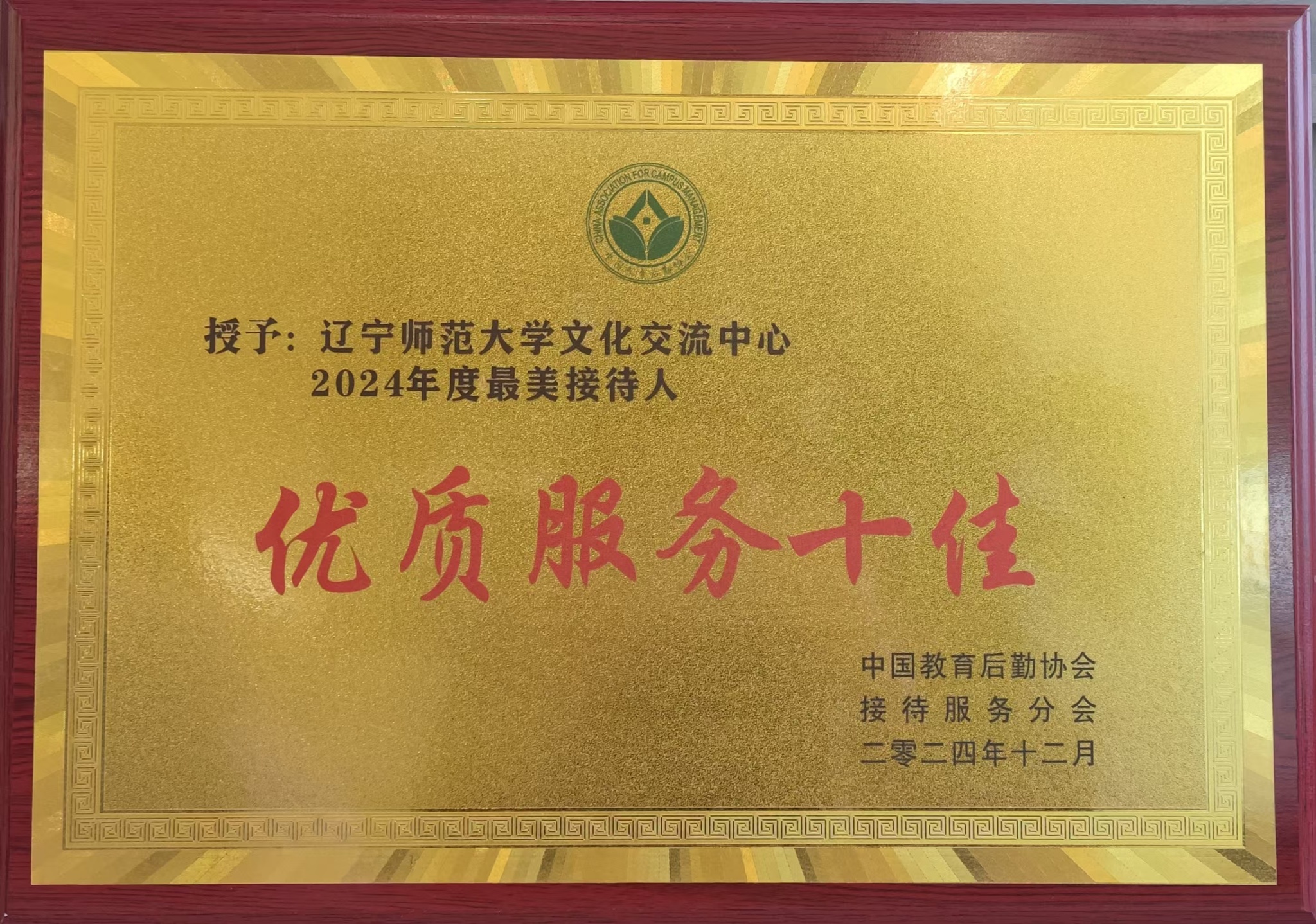 近日,由中国教育后勤协会接待服务分会主办的“最美接待人”荣誉授予暨事迹宣讲经验交流会在江苏师范大学举行,对2024年度“最美接待人”先进集体和个人进行表彰。我校国际文化交流中心荣获“优质服务十佳”荣誉称号,并在会上做经验交流。
