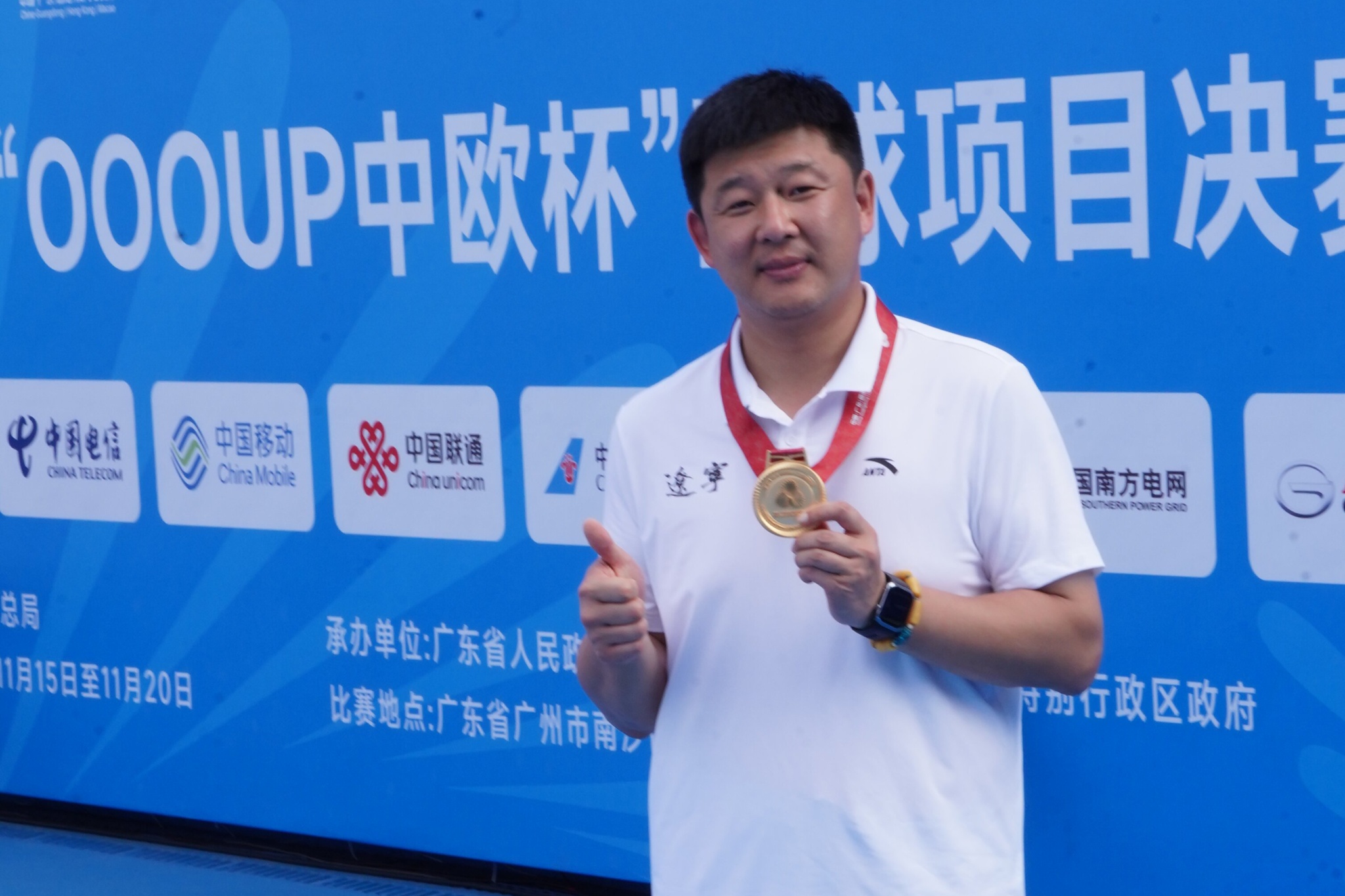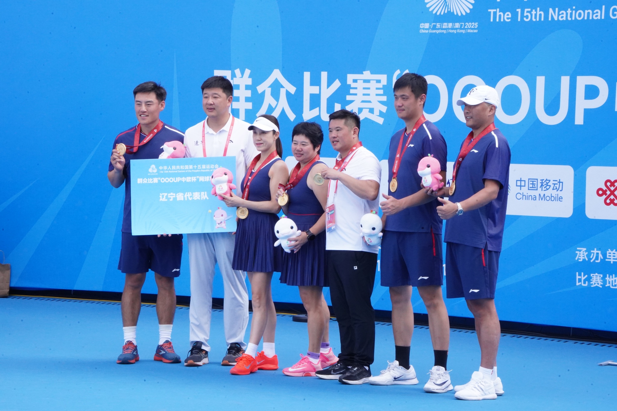 11月15日—20日,中华人民共和国第十五届运动会网球项目(群众组)决赛阶段的比赛在广州南沙国际网球中心举行。有16个省的代表队进入混合团体决赛阶段。我校邰峰老师作为辽宁队教练员带领网球队奋勇拼搏,一路过关斩将,先后战胜安徽队、河南队、四川队挺进决赛。最终,在决赛中战胜1号种子北京队获得金牌。