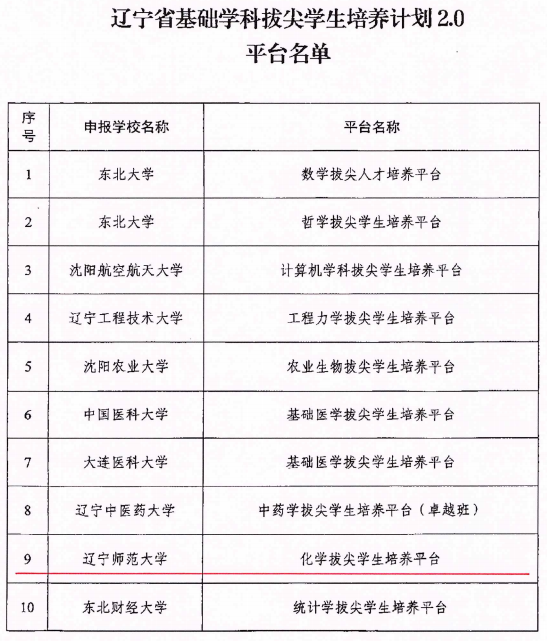 近日,辽宁省教育厅公布了2025年省级基础学科拔尖学生培养计划2.0平台名单,全省共评选出10个平台。我校化学拔尖学生培养平台成功入选,成为继心理学、地理科学之后第三个获批的省级基础学科拔尖学生培养计划2.0平台,是学校深化教育教学改革、完善高水平育人体系取得的又一重要突破。