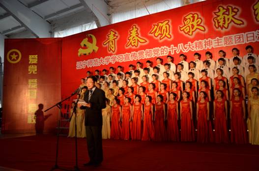 比赛开始前,校团委书记王维致辞。他首先说明了举办歌咏比赛的意义,并介绍了学校第12届大学生素质联赛的有关情况。王维希望全校青年学生认真学习党的十八大精神和近期习近平总书记的几次讲话精神,牢记党和人民的重托,把爱国主义作为始终高扬的光辉旗帜,把远大理想作为坚贞不渝的人生追求,把刻苦学习作为成长进步的重要阶梯,把艰苦奋斗作为自立自强的优良品德,把开拓创新作为展示才华的时代风格,把高尚品行作为自身修养的基本操守,以执著的信念、优良的品德、丰富的知识、过硬的本领,走在时代前列,肩负历史使命,投身伟大实践,奉献青春智慧。