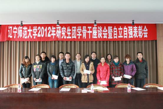 天行建,君子以自强不息。今日依靠,明日施靠,相信师大自立自强的优秀学子定会绽放炫丽的未来。至此,辽宁师范大学2012年研究生团学骨干座谈会暨自立自强表彰会圆满结束。