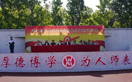 为了积极倡导“走下网络、走出宿舍、走向操场”、积极参加体育锻炼的阳光体育活动,丰富大学生的课余生活,我校学生处、团委主办的2015年春季学生趣味运动会于5月16日8:30和14:00分别在黄河路校区和西山湖校区成功举行。校工会主席张学军,机关相关部处负责人出席开幕式并观看比赛,全校2014级学生参加运动会。