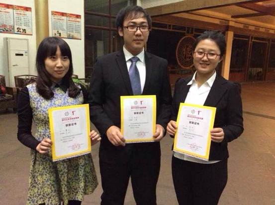廖庄、赵迪和黄慧三位获奖学生合影