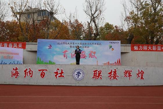 本届社团文化节开幕式暨社团纳新游园会以“百团盛放”为主题,寓意全校165个社团争奇斗艳、尽情绽放。校学生会主席、学生社团联合会主席、文学院2013级于晓同学致开幕辞。她讲到,一年来我校社团工作以“全心全意为师生服务”为宗旨,以“社联搭台,社团唱戏”为工作理念,社团发展保持良好态势,社团数量稳步增加,社团活动品质、活动参与人数等都有显著的提高。