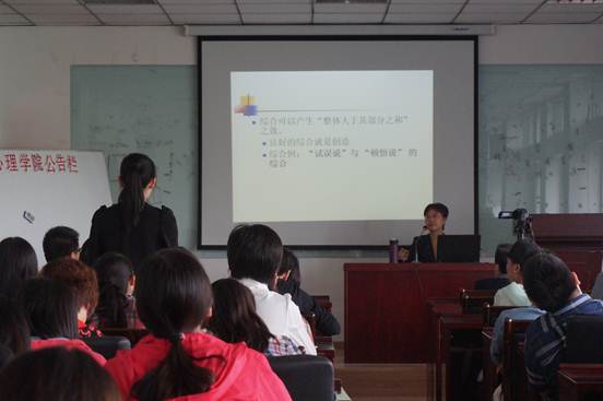 2014年5月23日上午8:30,心理学院于实验楼402举办第二届 “进之论坛” 。从2013年首届“进之论坛”开始,心理学院每年都在博士生毕业前举办一次“进之论坛”,论坛中在读博士生之间进行学术思想及经验交流,并展示自己在读期间的学术成果。本次还论坛邀请了2005年全国优秀博士论文获得者,苏州大学应用心理学研究所所长刘电芝教授进行专场报告。
