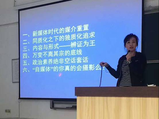 张轶老师是辽宁省宣传文化系统“四个一批”人才、辽宁省优秀新闻工作者,曾公派美国加州州立理工大学大众传媒访问学者。她将自己24年新闻工作的丰富经历融入教学实践,内容详实、思维严谨、语言诙谐。她通过多个生动鲜活的新闻案例,解析了新媒体时代下新闻传播的新路径、新特点;结合自身的经历,着重讲述了作为一名新闻人的必备素质、职业精神和安全“底线”;对新闻记者容易出现的文字错误、摄影基本要素等进行了具体讲解。她为学生记者消除了工作中的困惑,指明了努力方向,让同学们真切感受到了新闻工作的重要意义和肩负的使命。